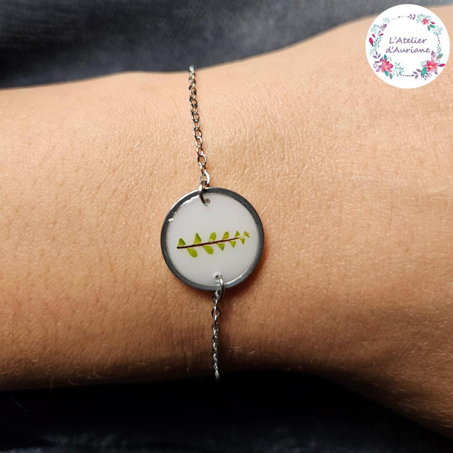 Bracelet "Fougère blanc" argenté